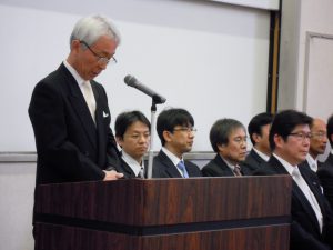 平成29年度工学部卒業生・修了生送別式が3月22日に工学部大講堂で行われました。工学部同窓会からは、黒山会長以下5名の理事が参式しました。