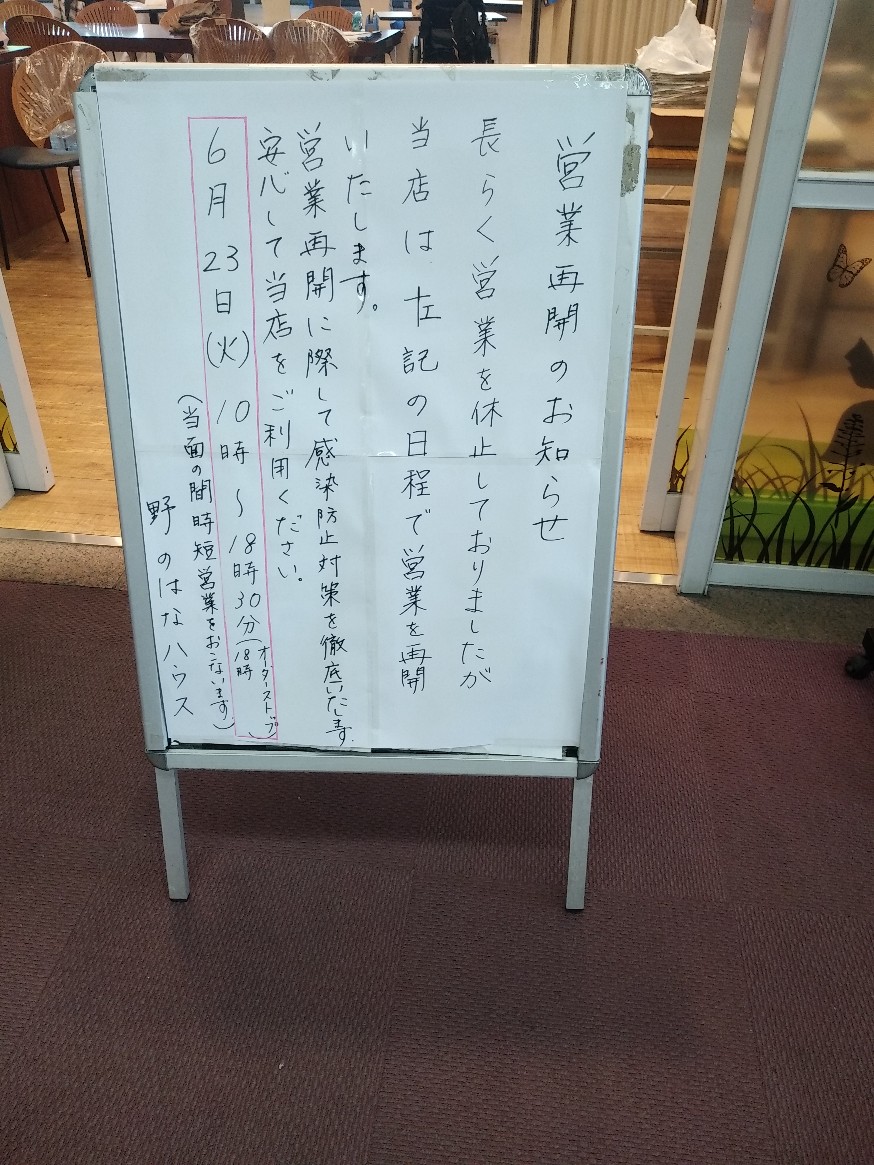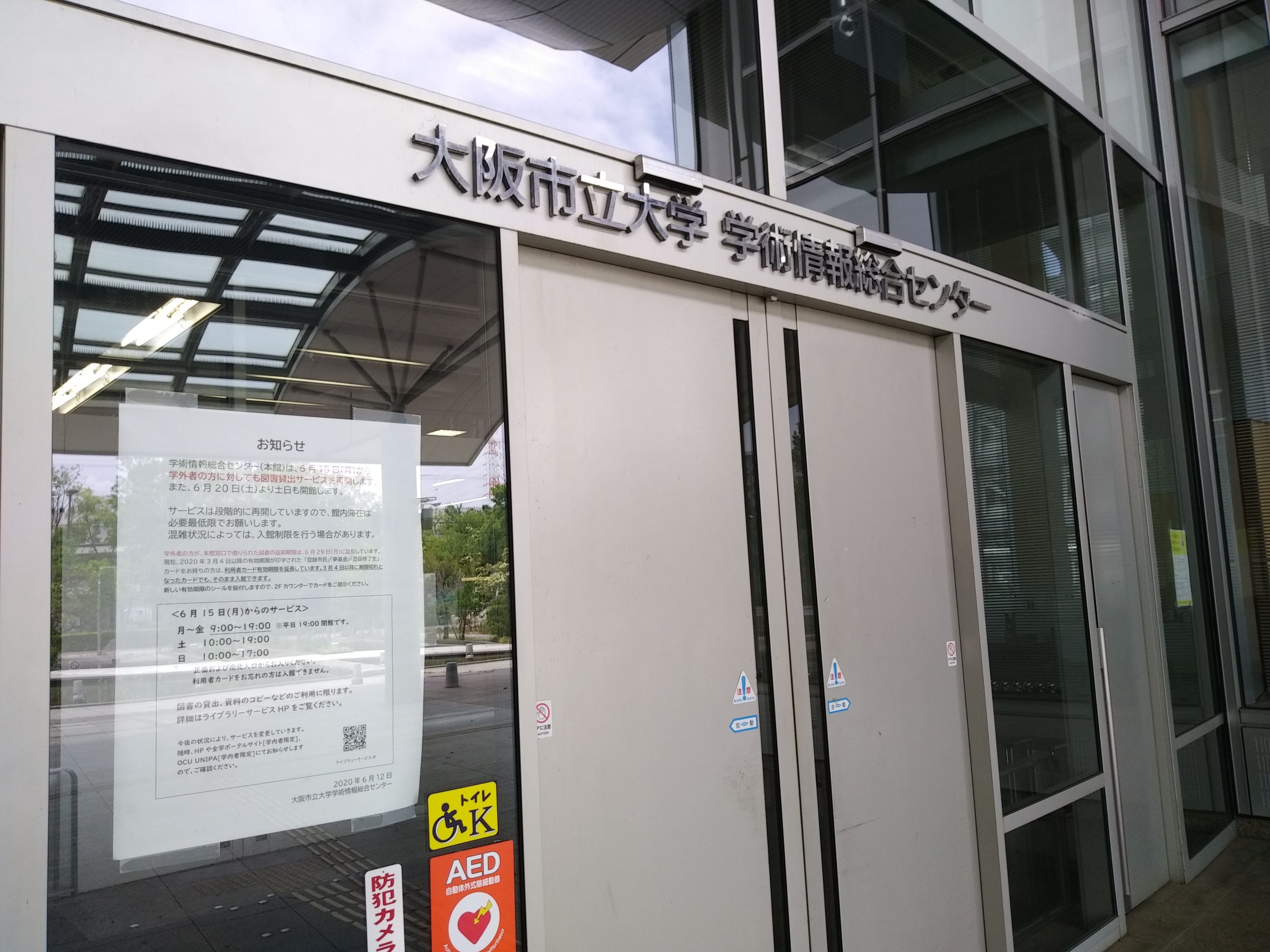 ここ数カ月学生の姿をほとんど見かけなかったのですが、6月1日から徐々に増えてきました。そんな中、本日から学情センター(図書館)が制限付きながら卒業生でも利用できるようになりました。また、一階の「野のはなハウス」も来週から営業を始めるとの事です。ただ、工学部内にはまだ入構証がないと入れない状況が続いています。 一日でも早く日常の生活に戻れることを祈っています。