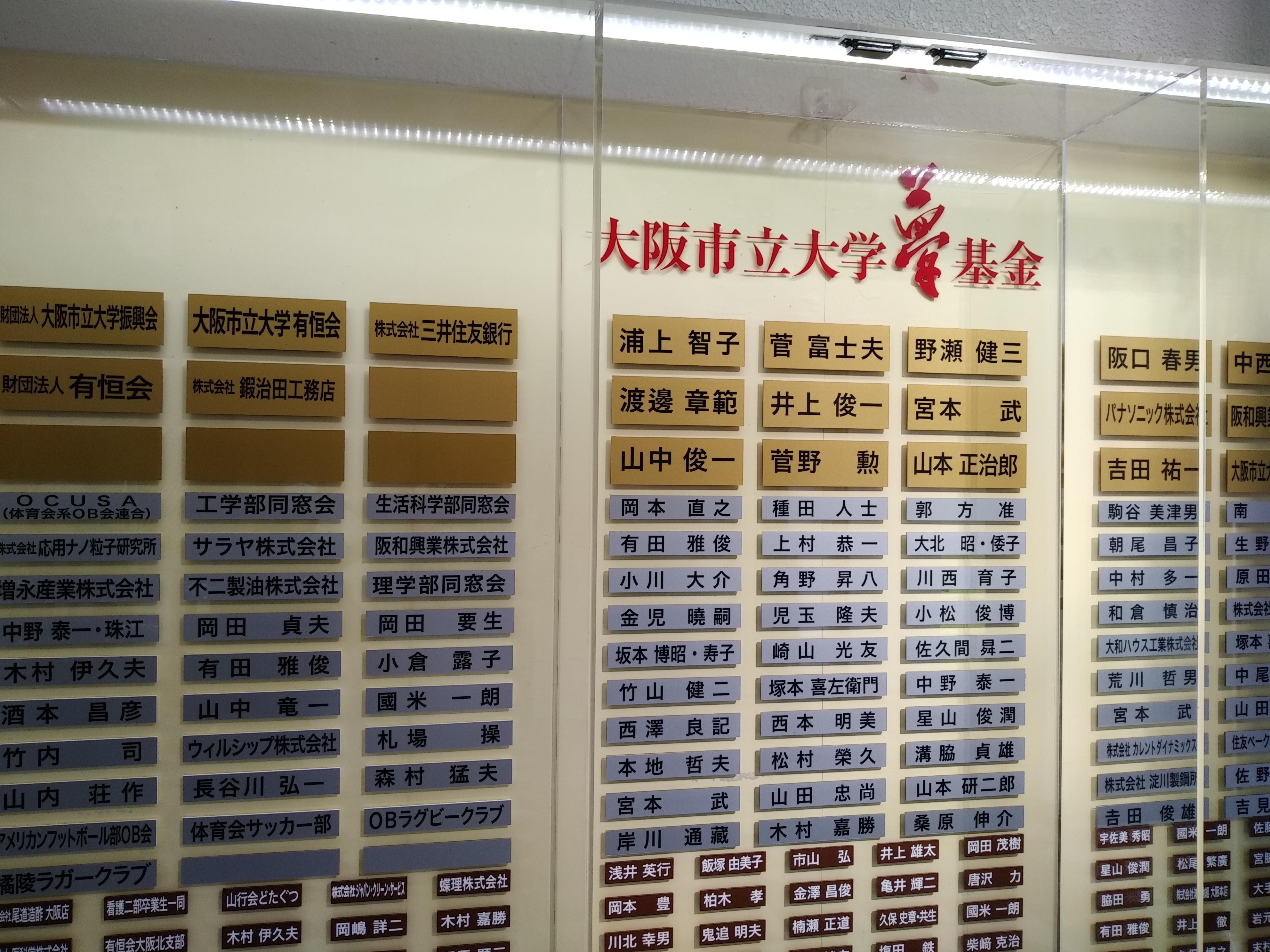 大学夢基金にコロナ禍にある学生支援を目的に500万円寄付したところですが、本日田中記念館一階にある寄付一覧ボードに掲載されました。