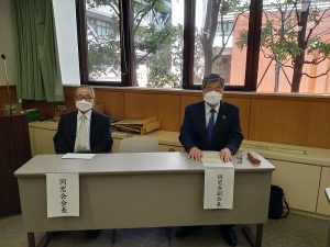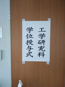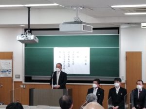 工学部同窓会では後期博士課程学位授与式に斉藤会長、神門副会長が出席し祝辞を述べました。