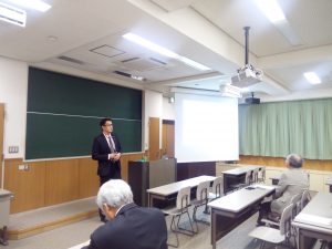 「銀杏祭」に合わせて行われる「ホームカミングデー」の特別企画、工学部・工学部同窓会共催の「第4回工学部新任・若手教授による講演会~私の研究が目指すもの~」が11月3日の15時から16時20分まで工学部G棟1階中講義室で開催された。参加者は同窓会員を主に約40名。