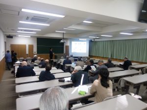 講演は工学研究科教授で都市計画、都市再生デザイン、景観論、エリアマネジメントがご専門の嘉名光市先生、題目は『新たな都市計画の潮流』。