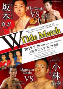 大阪市立大学大学院生の坂本真宏さんがWBOアジアパシフィックフライ級王座決定戦に挑戦されました。学長はじめ同窓会OB,関係者一同の努力の成果で大阪市立大学体育館で復帰戦が行われました。当日は、WBOアジアパシフィックバンタム級のタイトルマッチもあり、ダブルタイトルマッチが行われました。
